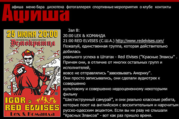 Увидел у Чер-ского афишу выступления классной группы "Красные Элвисы".