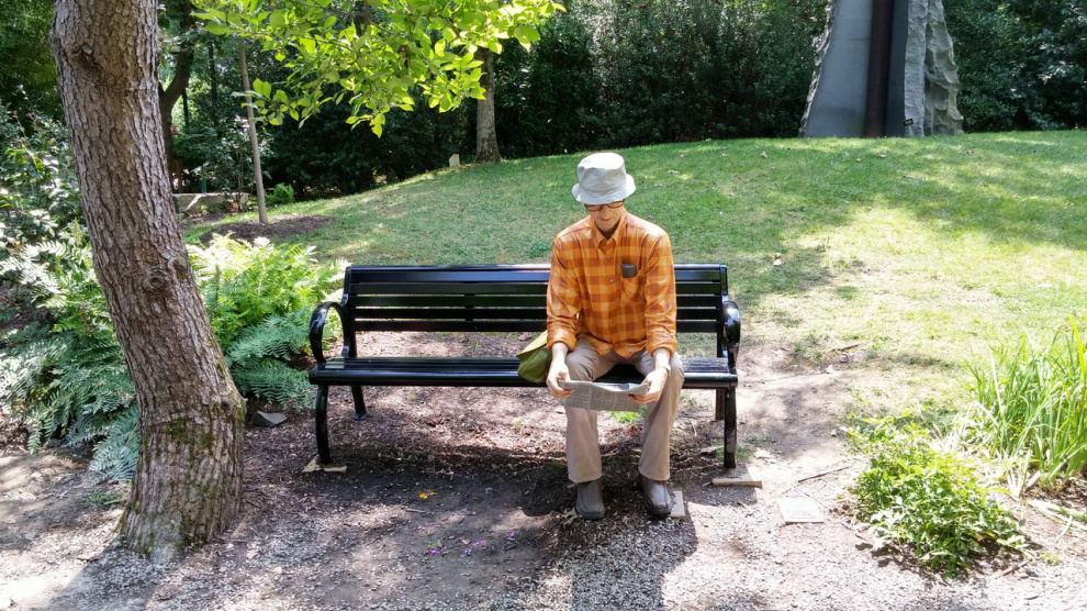 Читающих мужиков тут полно. Я, кстати, только приспособился сфотографировать очередную скульптуру, изображающую читающего корейца, как он вдруг пошевелился. На фото - не он, просто скульптура.