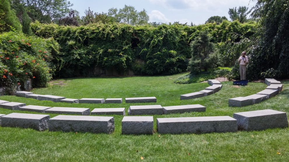 В районе городка Трентона, Нью-Джерси, в местечке Хэмилтон есть очень интересное место под названием "Земля скульптур" (Grounds for Sculpture).