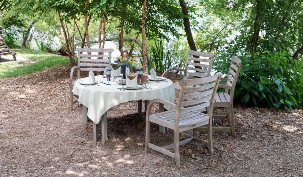 Вот сюда постоянно садятся туристы и пытаются оторвать бокалы и тарелки от стола. Не получается.