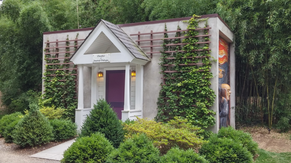 Палатка, помогающая побыть наедине с собой. Я туда заглянул - внутри сидела почтенная дама (живая), которой читали какую-то книжку.