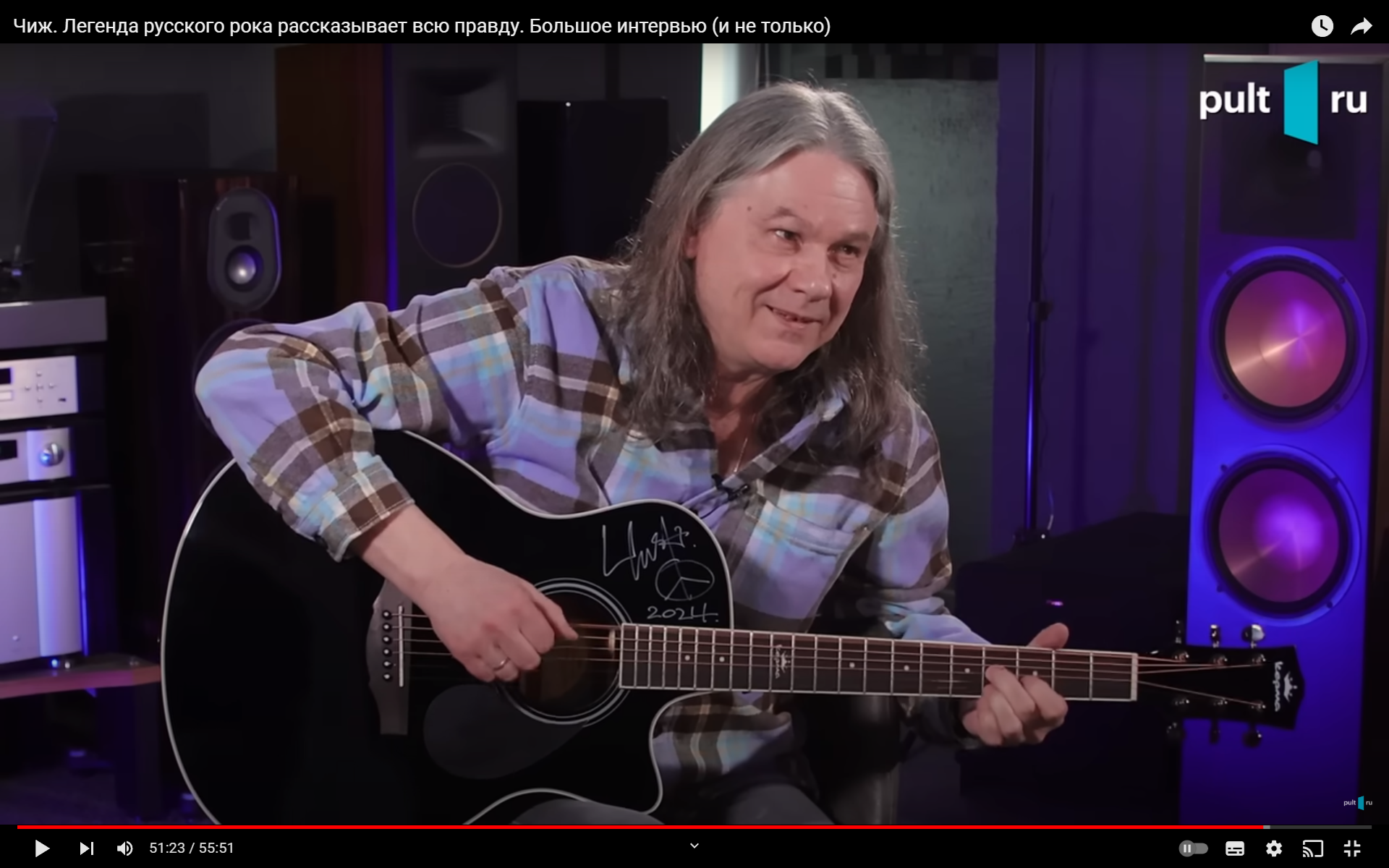 Наврал. Посмотрел только что трёхнедельной давности интервью Чигракова. Довольно унылое, рекомендовать не буду. Но в конце он подписал гитару и таки да, пацифик присутствует: