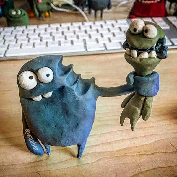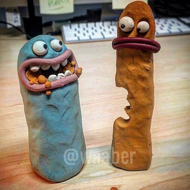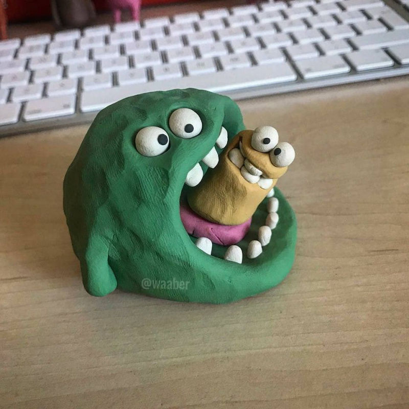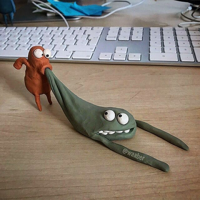 Рич Уэбер, директор по анимации мультипликационной студии Aardman Animations, создавшей "Побег из курятника", "Уоллес и Громит" и "Барашек Шон", и вне работы развлекается с пластилиновыми зверушками, которых он выкладывает в свой Инстаграм. Там очень весело, прям рекомендую. Вот несколько работ оттуда.