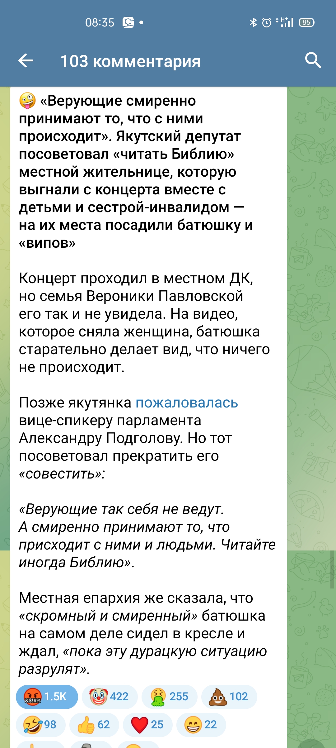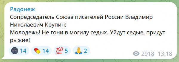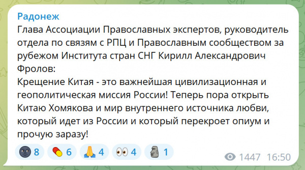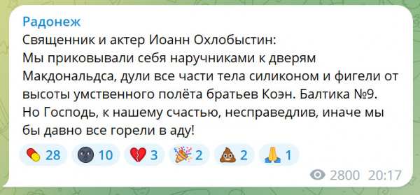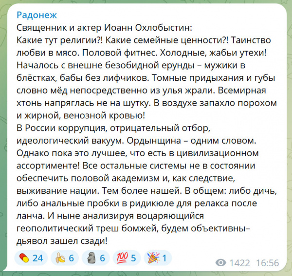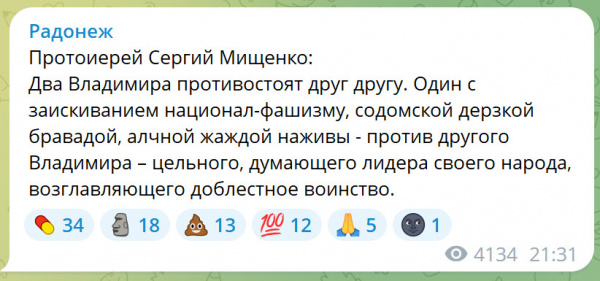Попалась тут ссылка на ТГ "Радонеж", который "Духовное сопротивление. Русский мiр". Начал читать, а там такая веселуха - это что-то!