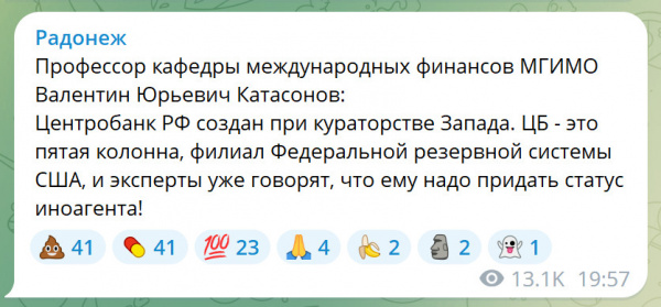 Профессор финансов МГИМО тут хорошую мысль подкинул.