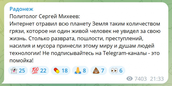 Не подписывайтесь на телеграм-каналы, сообщают в телеграм-канале Радонеж.
