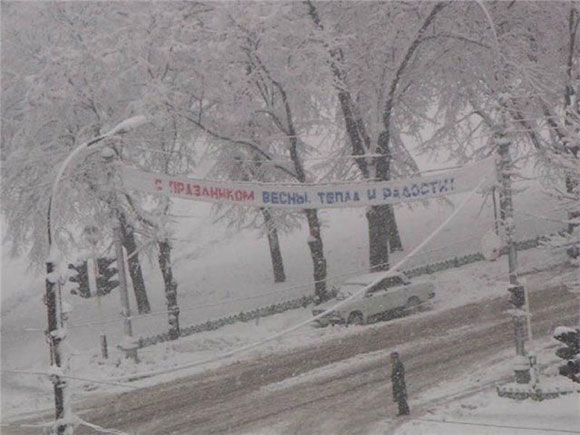 Вы у нас в Новосибе не видели что творилось пару дней назад - когда ГИБДД вынуждено было перекрыть выезды из города, автобусы в область разворачивали и отвправляли обратно на автовокзал (после того, как за городом автобус в прямом смысле слова сдуло с трассы в кювет). Да и в городе дороги замело...