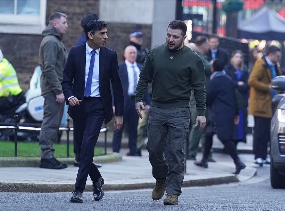 Зеленский на этом фото (вы отлично с ним подставились) в обычной немаркой одежде стиля кэжуал: лонгслив тёмной расцветки, практичные повседневные штаны с накладными карманами (у меня есть похожие), туфли в стиле outdoor (т.н. "для активного отдыха", а точнее для хотьбы на природе с комфортом). Выдать обувь за берцы даже вы не сподобились.