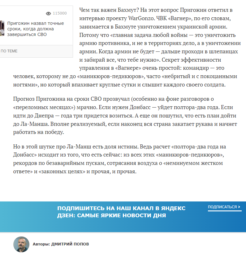 Чем так важен Бахмут? На этот вопрос Пригожин ответил в интервью проекту WarGonzo.