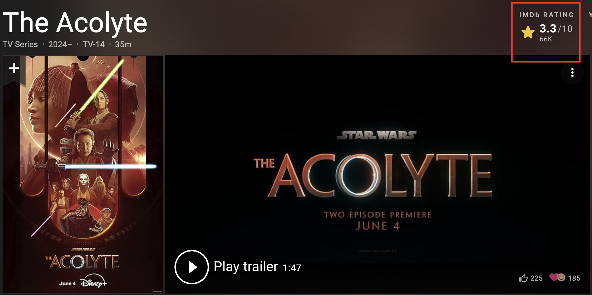 Согласен, инерция есть, но всё же Аколит можно было тормознуть ещё год назад. Сколько фильмов переснимали почти полностью, когда они не нравились студиям и явно пахло крупным провалом. Как можно было такое дерьмо, как Аколит, вообще выпустить? Они же должны видеть, что получилось.
