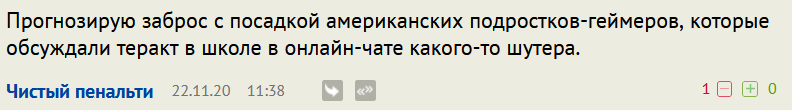 Прогнозирую заброс с посадкой американских подростков-геймеров, которые обсуждали теракт в школе в онлайн-чате какого-то шутера.