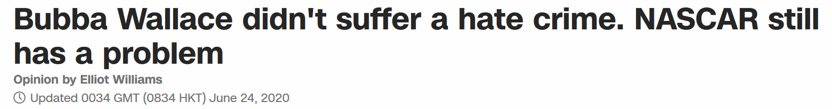 Читаю эту заметку - и просто кровь стынет в жилах, просто стынет! Да и как не стынуть-то от таких страстей - "Investigators: No federal charges after noose found in Bubba Wallace's garage stall was there in fall of 2019".