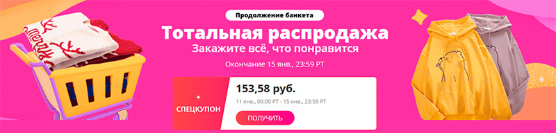 Aligarazh100jan — дает скидку 100 рублей при заказе от 800 рублей + по ссылке спецкупон на скидку в 154 рубля.