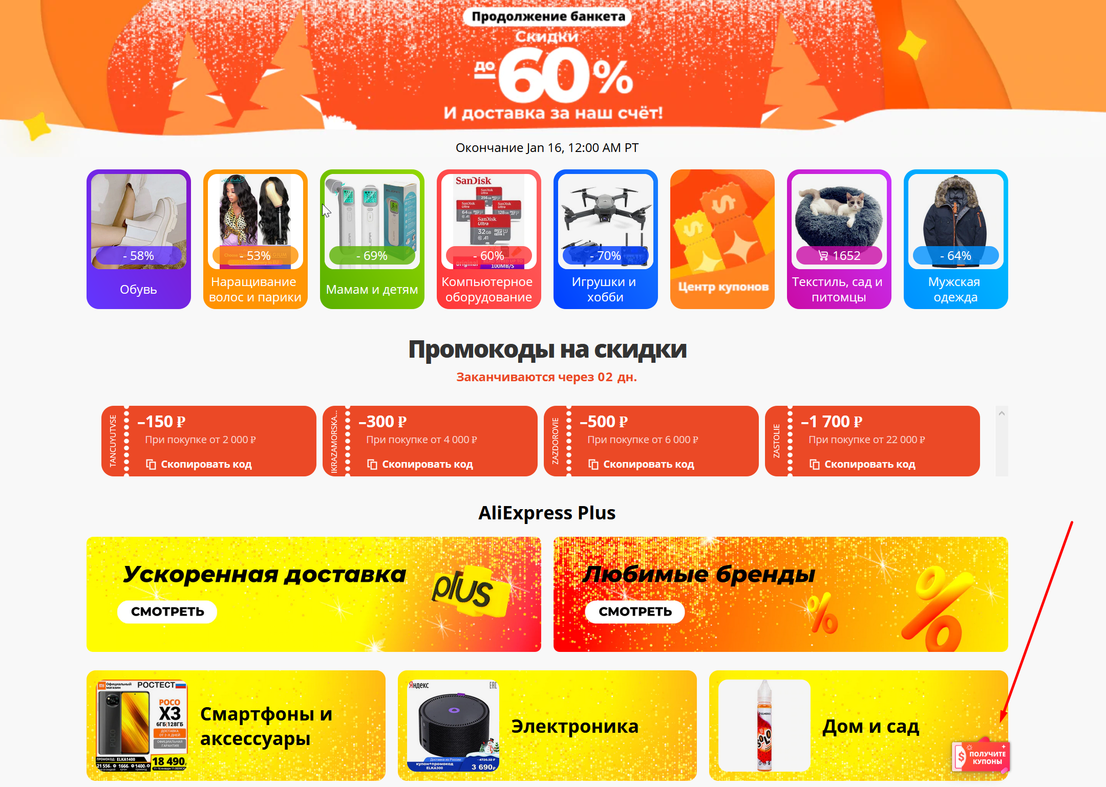 Здесь еще много промокодов и купонов. Попробуйте применить именно купоны.