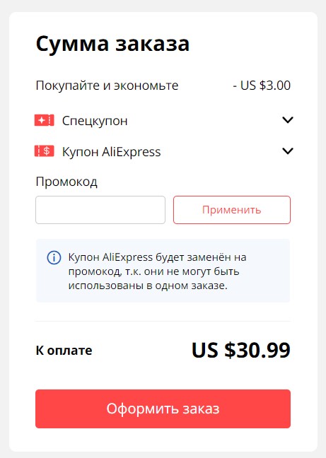 В-третьих получаем скидку от площадки Алиэкспресс
