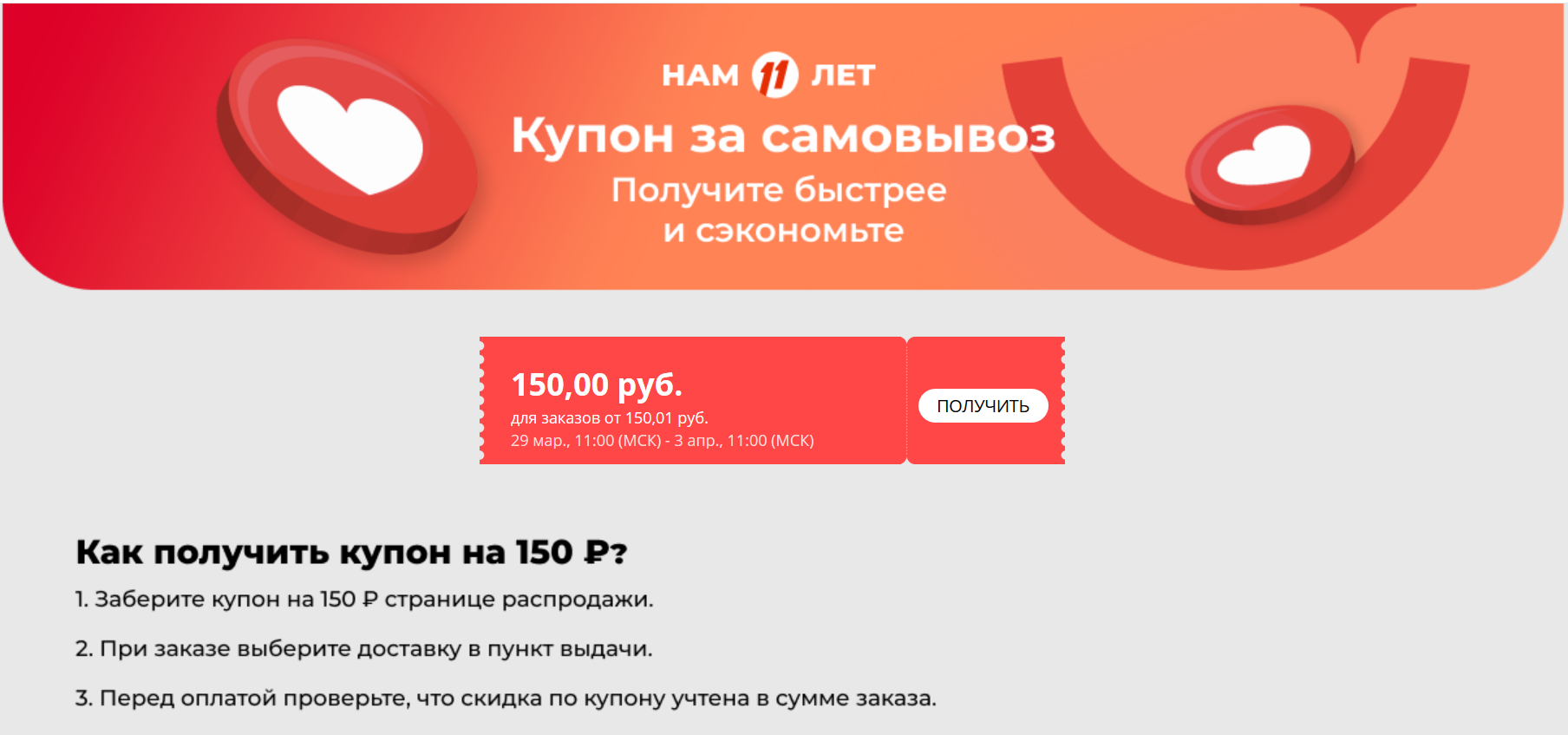 скидка 220 рублей на весь товар стоимостью выше 2200 руб(который участвует в распродаже, посвященной 11 лет), вроде так...