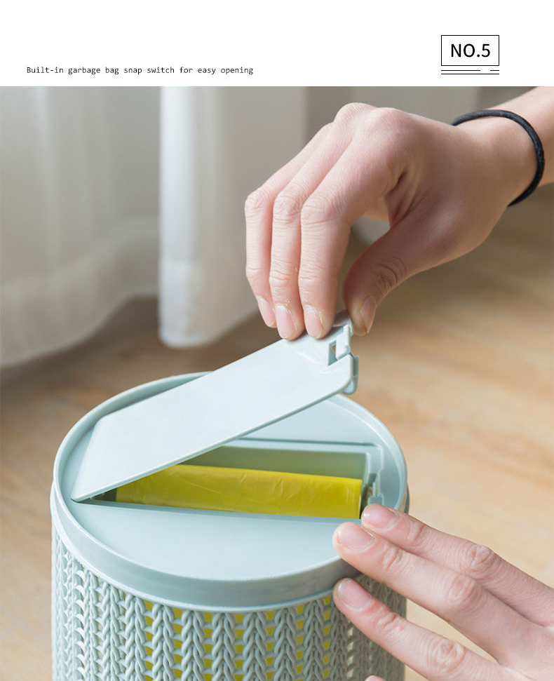 Очень удобно - достаешь заполненный пакет и сразу тянется новый. Ободок сверху снимается для закрепления пакета. Сделан из пластика под ротанг. Продавец надежный.