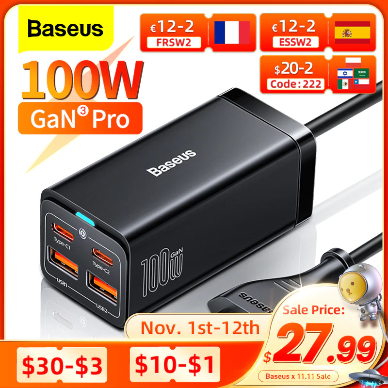 Отличный зарядник Baseus GaN 100 Вт. Быстрая зарядка 4,0 QC 3,0 PD