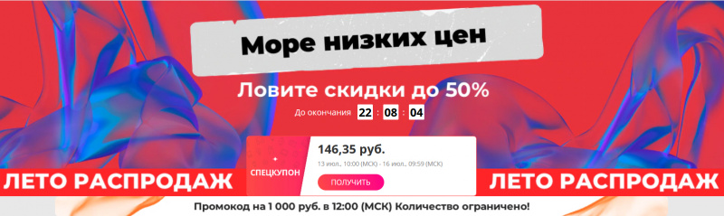 Промокод ALIPLUS1200 — на 1200р. на любые товары на сумму покупки от 10000р.