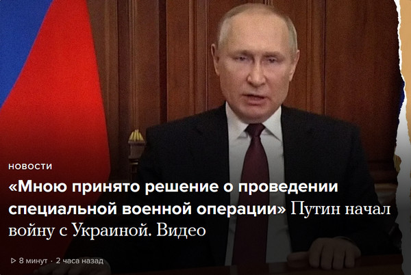 Да уже сразу было видно из речи про Украину что дед совсем выжил из ума. Очевидно что он мог просто сказать "идёт притестение россиян в ДНР и ЛНР, республики просят о помощи". Но нет, сверху ещё прилетела двухчасовая лекция больного рассудка.