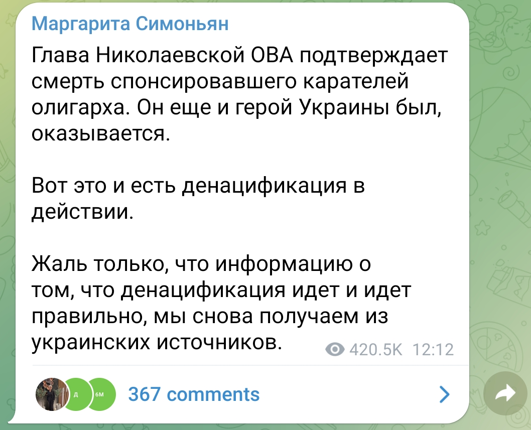 Ага, вот ципсошники и пишут всякие глупости. Над же как-то ежедневные ролики ВСУшников на тему "рятуйте, нас зрадили" перекрывать.