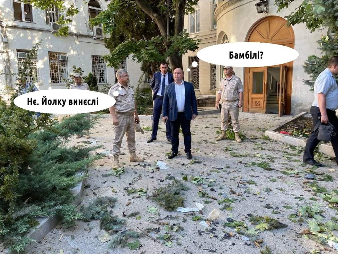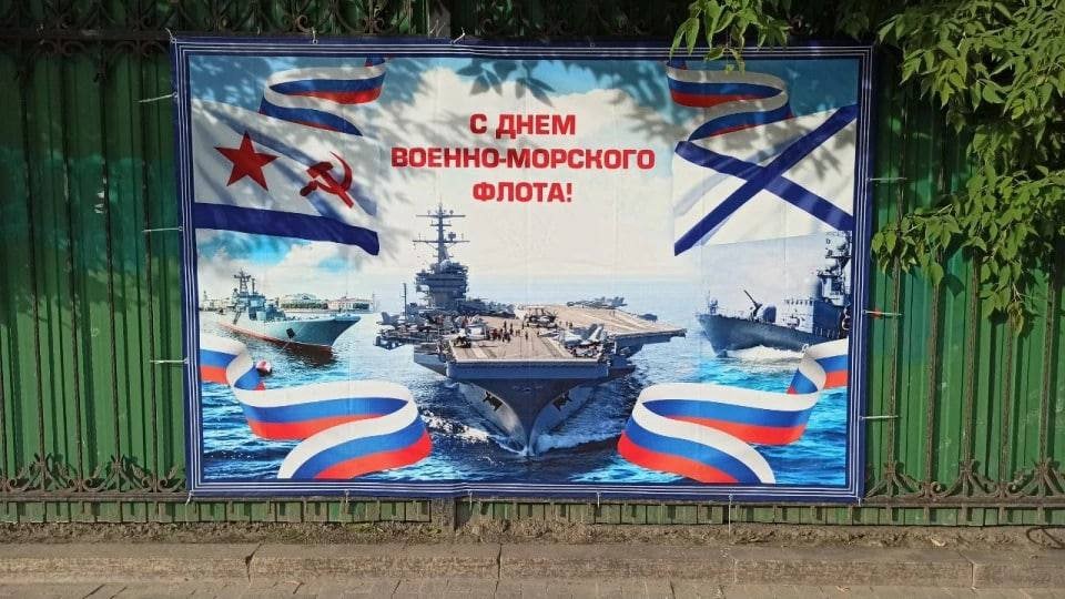 Самодельный беспилотник с маломощным взрывным устройством попал во двор штаба Черноморского флота в Севастополе утром в воскресенье. Праздничные мероприятия в честь Дня ВМФ отменены. (Отсюда.)