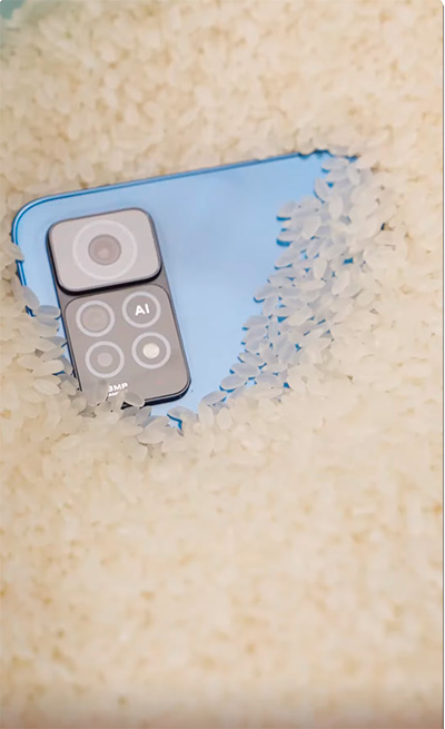 Утопили в воде смартфон без влагозащиты, после чего поместили его в рис. Через 12 часов достали. Смартфон не ожил. А рис забился в порт для зарядки, и его оттуда было сложно выковырять.