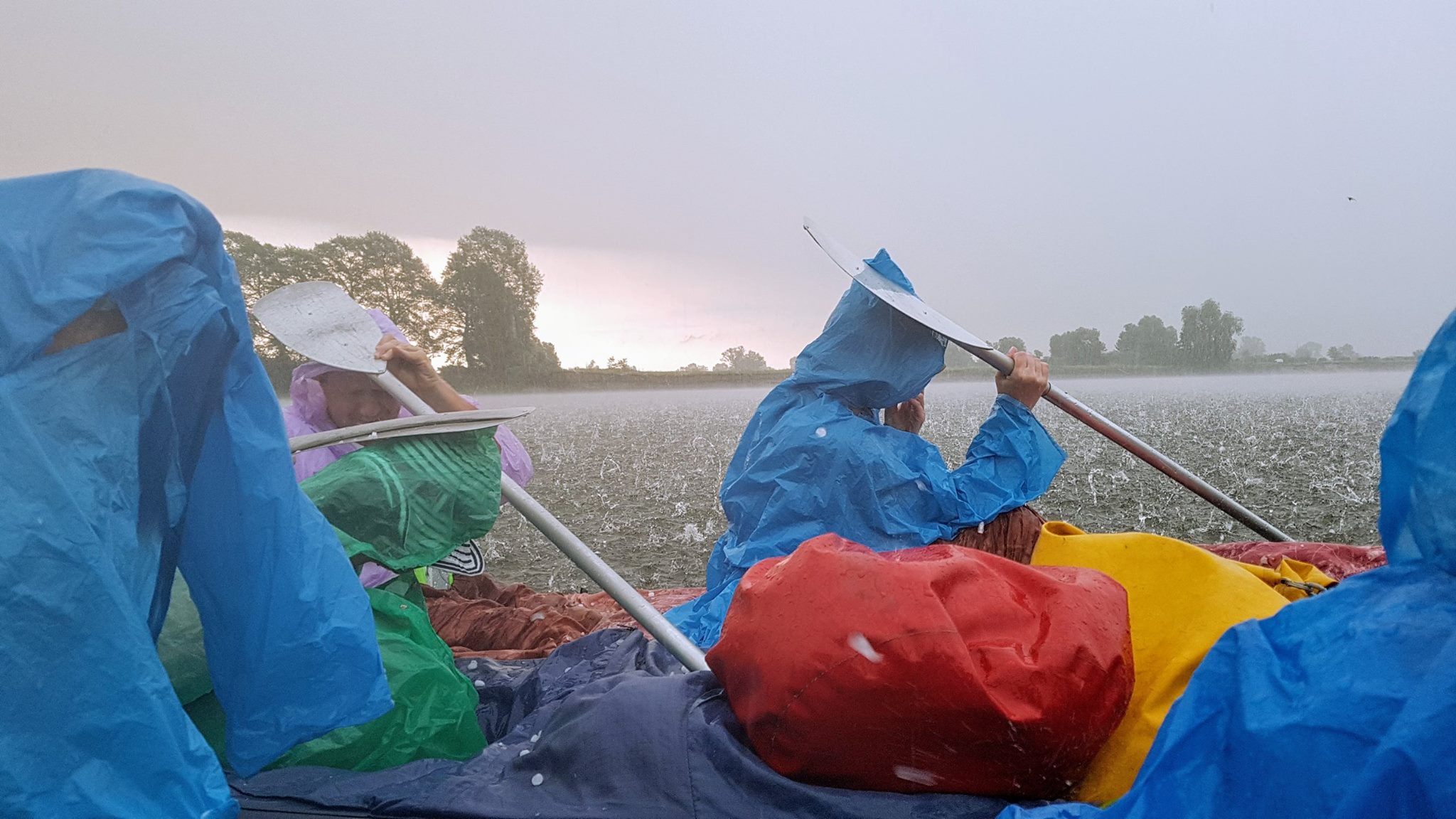 Три года назад наших ребят приличный такой град застал на сплаве посреди реки. Пришлось веслами прикрываться. )