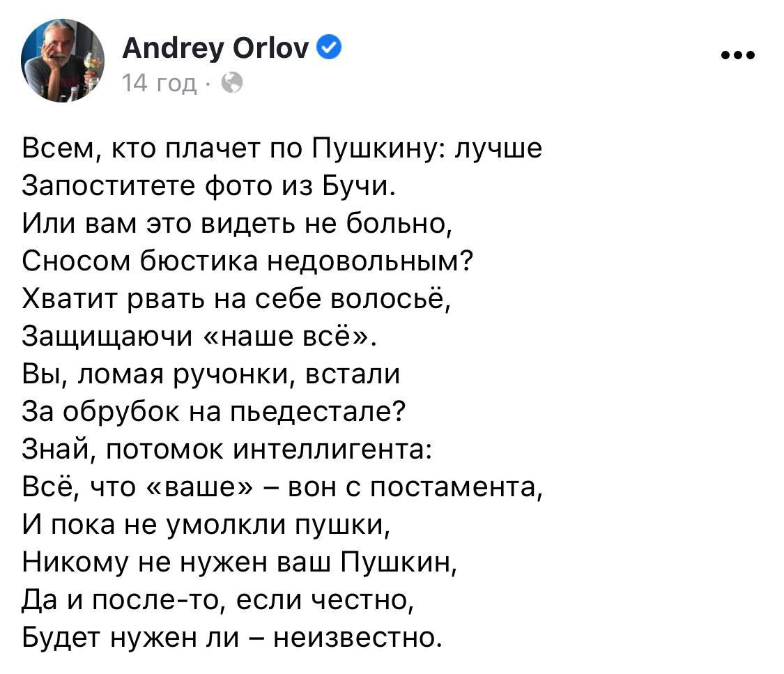 Инфантилы как раз те, кто предлагает выходить на улицы и "что-то делать". Выход на улицы не помогает даже против мелкого диктаторишки типа Макрона или Трюдо. Когда у диктатора полмиллиона росгвардии, карманные суды и над ним висит пожизненное за военные преступления, он перестреляет столько выходящих сколько понадобится. Чтоб не было Путина надо было в 90х гражданское оружие легализовывать, тогда бы не было болотного дела, но коль скоро русским оружие давать нельзя, они же спьяну друг друга перестреляют, то русским придётся идти стрелять украинцев. Сколько получится.