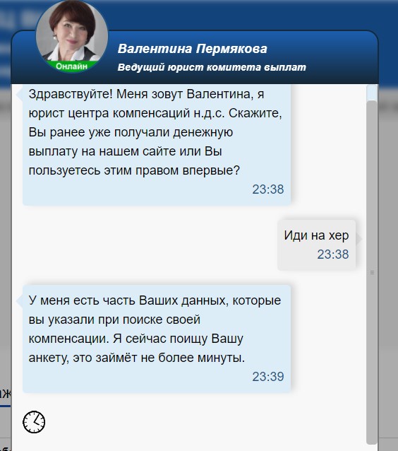 Я не смогла с Вами связаться по почте, на Ваши ФИО поступил перевод от служб компенсации.