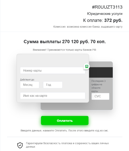 Там немного, всего 372 рубля. Для оплаты которых нужно ввести все данные карты, включая CVC. И они лично гарантируют вам безопасность платежа! Прям зуб дают.