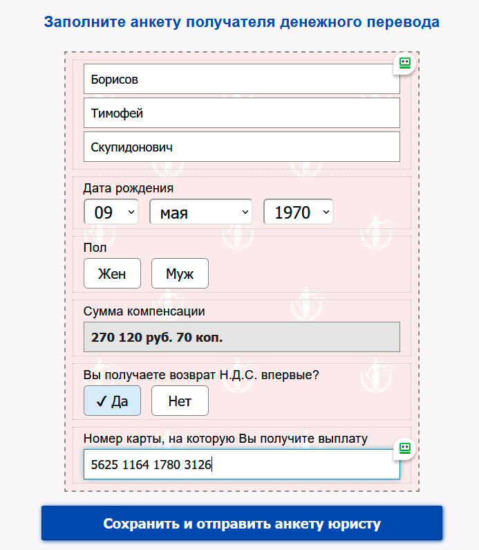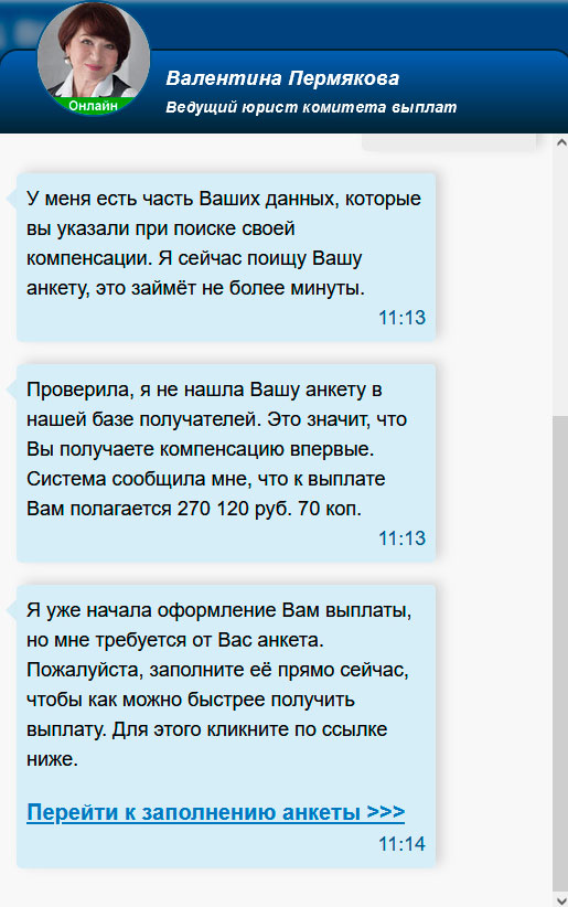 Юрист Валентина Пермякова, миловидная дама из фотобанка, объяснила, что сначала я должен заполнить анкету. Система по адресу электронной почты выяснила, что мне полагаются 270 тысяч, так что теперь я должен ей объяснить, кто я, вообще говоря, такой.
