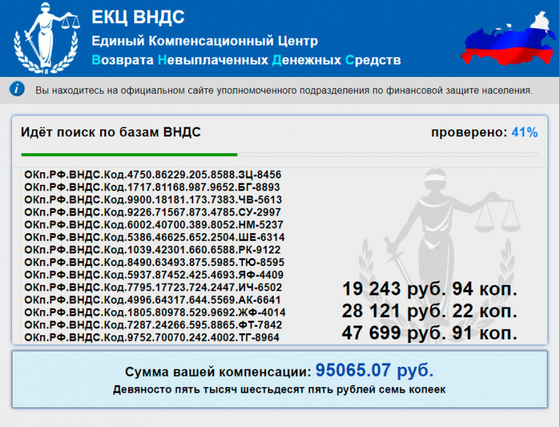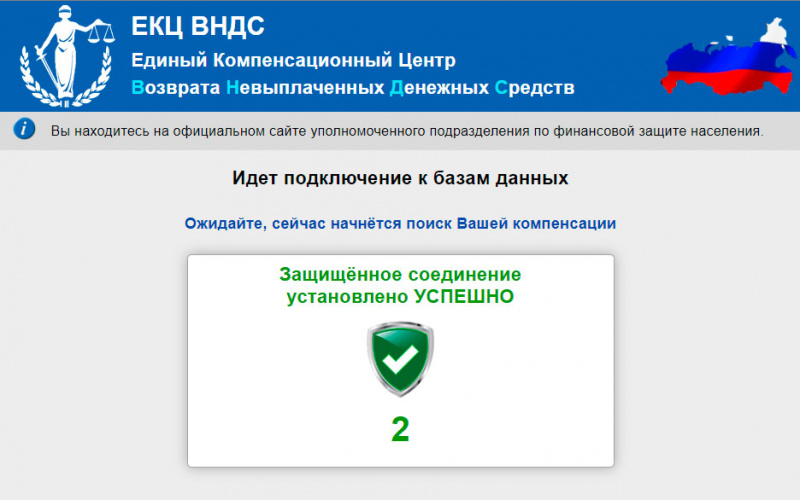 После установления защищенного соединения система сразу начинает искать полагающиеся вам выплаты - все это очень волнительно!