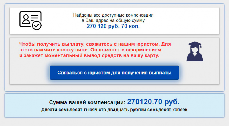 Наконец все как следует проверили и... 270 тысяч мне готово выплатить родное государство - сладкой тоской заныло сердце! Тут же побежал связываться с их юристом, чтобы он мне заказал моментальный вывод средств на мою карту.