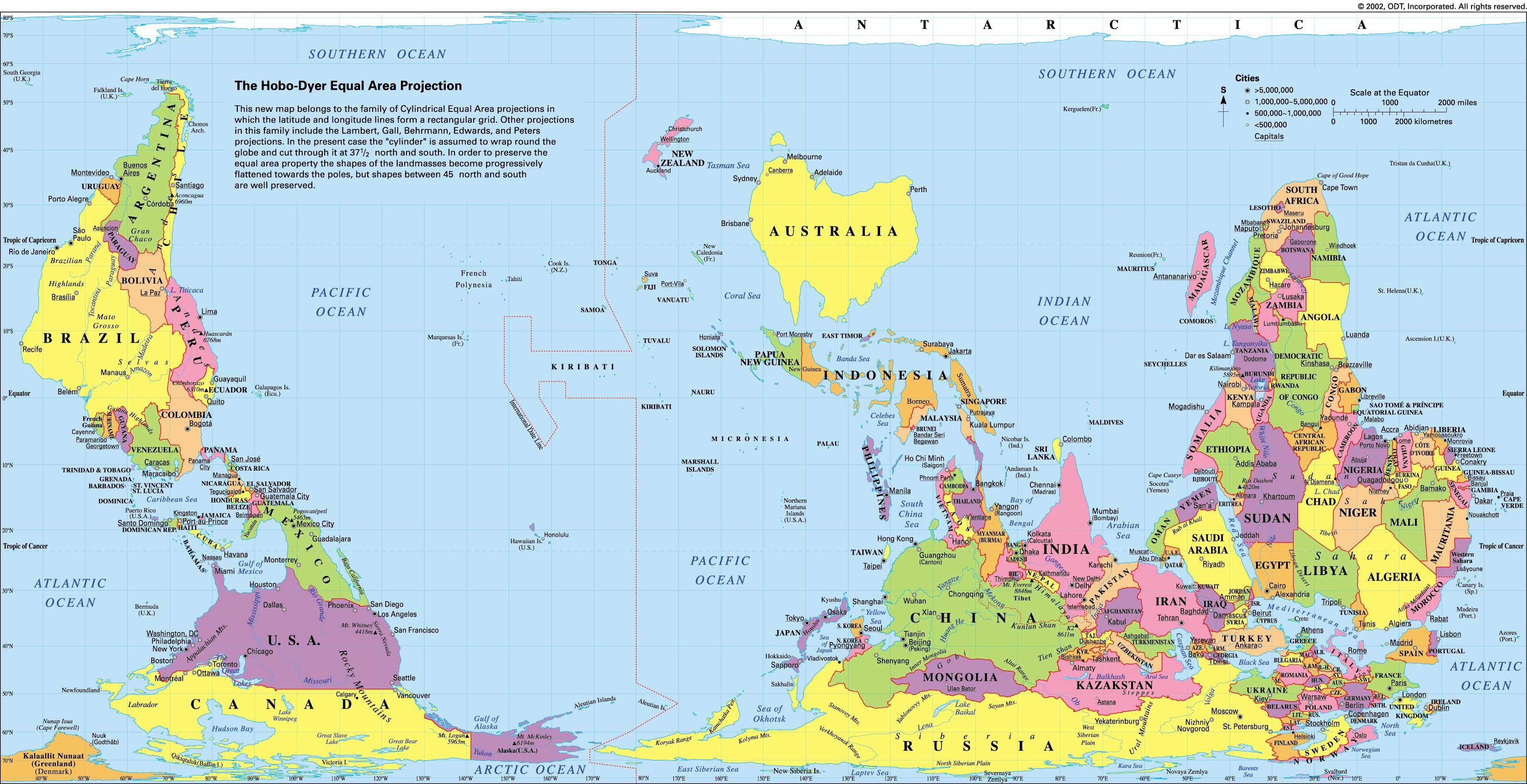 Давно знал, и сайт подобный лет 7 назад нашел. Помню в ФБ даже срачь по этому поводу случился, когда народ, импринтнутый проекцией Меркатора словил не хилый диссонанс.