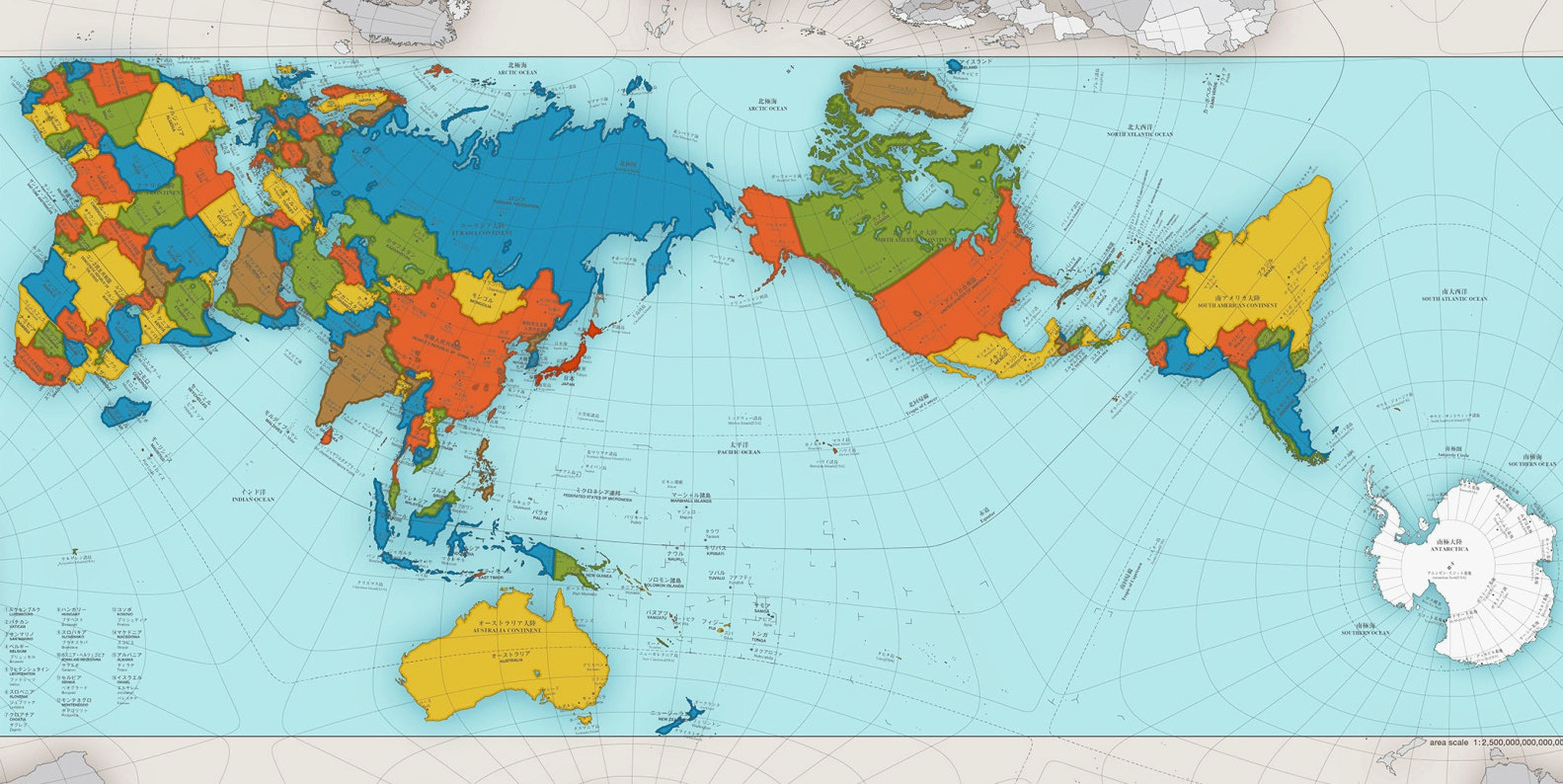 Пишут, что японский архитектор Hajime Narukawa разработал эту проекцию, с наименьшими искажениями.