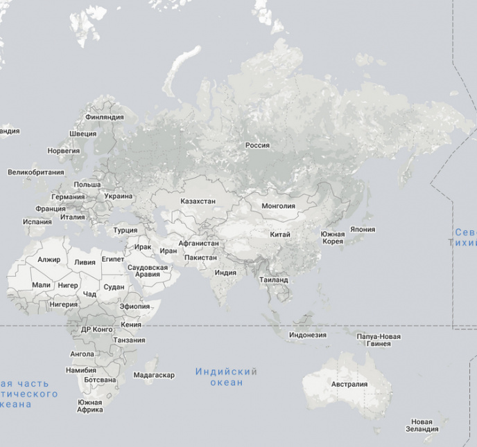 Все таки больше всего проекция Меркатора увеличивает Гренландию. Она получается в несколько раз больше Австралии хотя в реальности в почти в четыре раза её меньше.