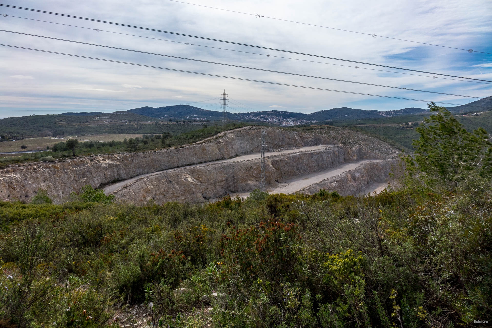 Ну и вот весь Пенедес как на ладони. Это долины между несколькими холмами. Из данного холма добывают известняк для строительства.