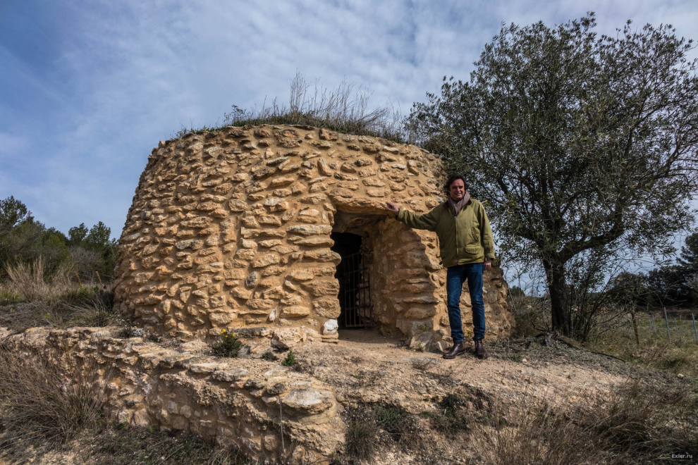 Марсело демонстрирует античную хижину: такие строения выкладывались из камня безо всякого цемента и служили для укрытия от дождя, отдыха и обогрева наемных сезонных рабочих. В хозяйстве Марсело сохранилось аж 23 таких хижины.