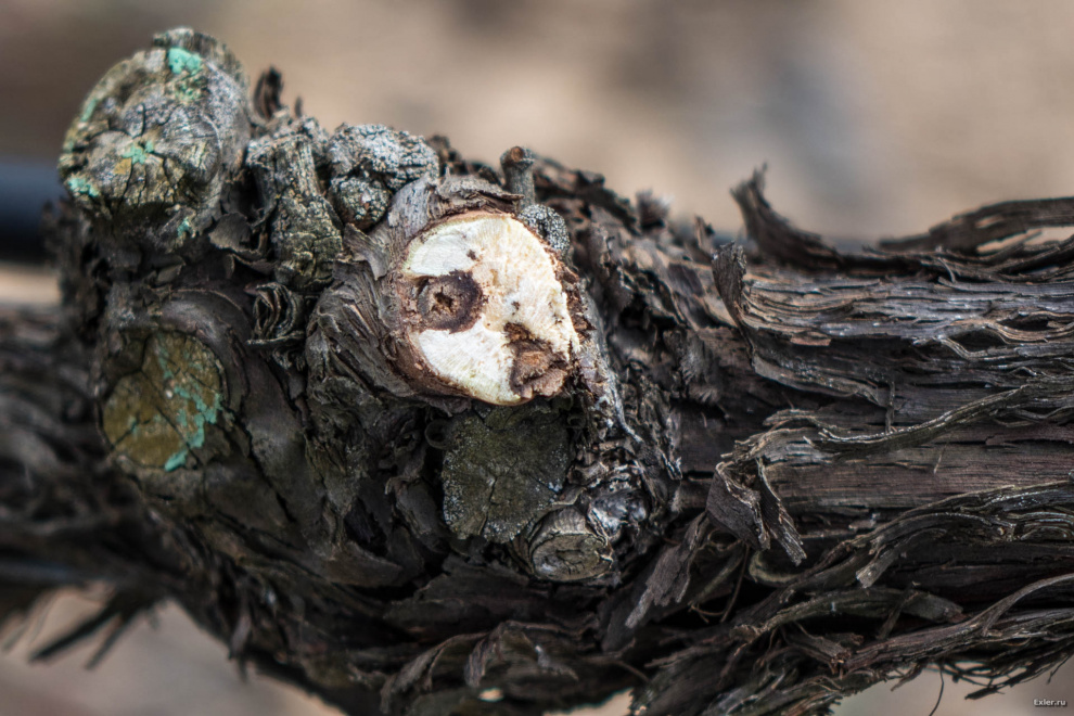 Марсело показал проблемы у одного из виноградников: раньше этим участком занимался безграмотный агротехник, который неправильно подрезал лозу (очень низко) - в результате у лозы стали возникать вот такие пораженные грибковые области, которые растут и в конце концов часть лозы погибает.