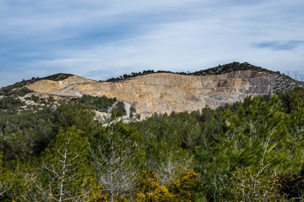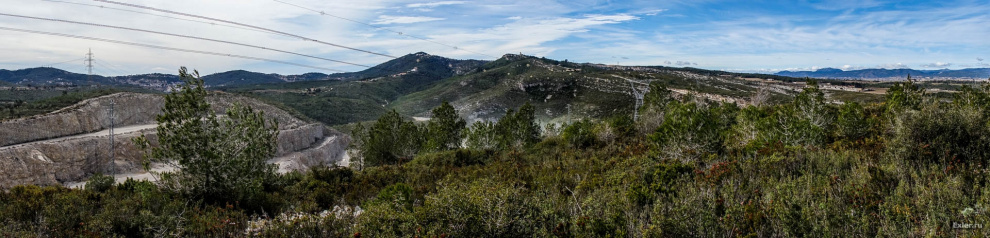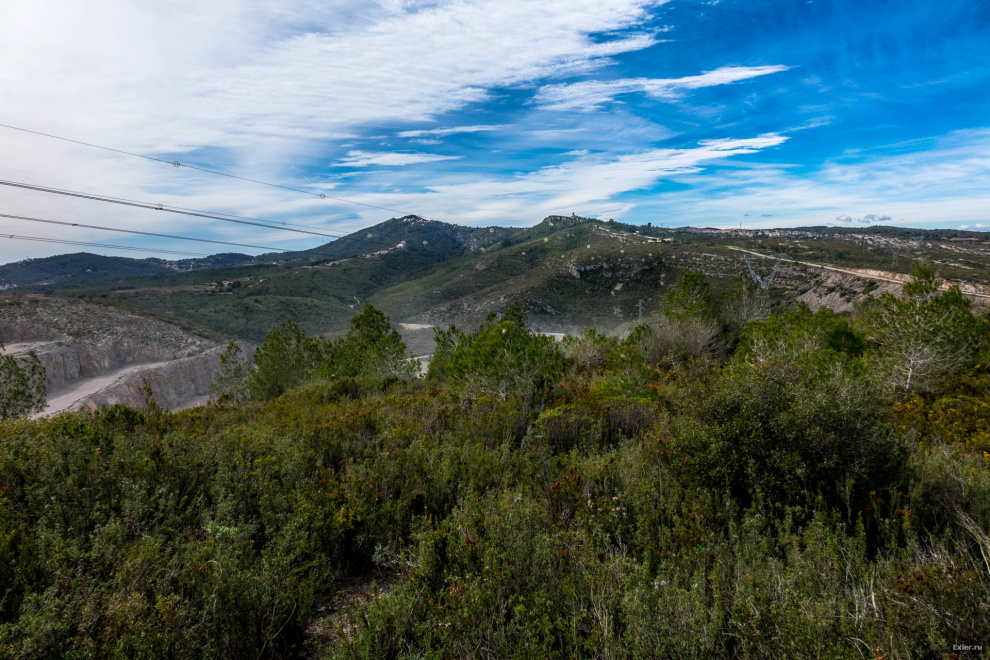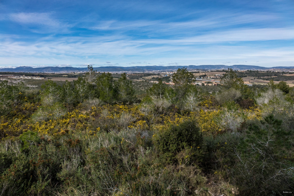 Ну и вот весь Пенедес как на ладони. Это долины между несколькими холмами. Из данного холма добывают известнях для строительства."