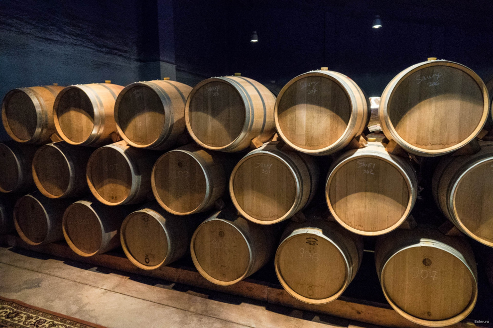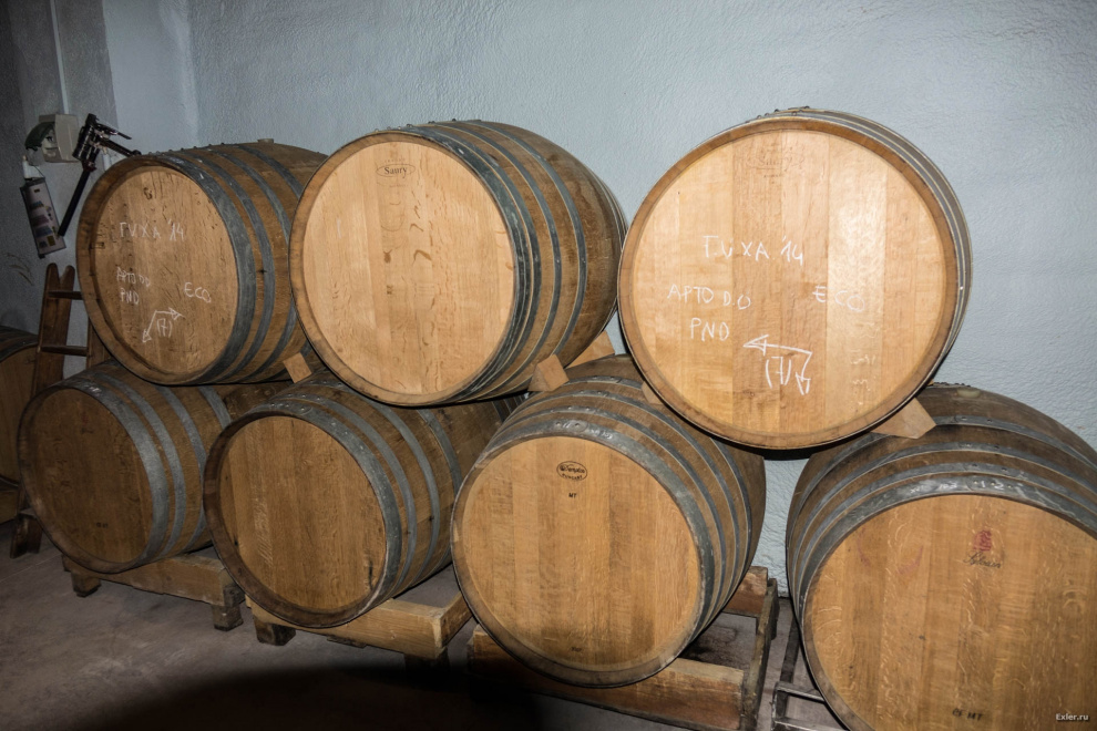 Вернулись в хозяйство и отправились посмотреть на подвал с бочками, в которых выдерживается вино.