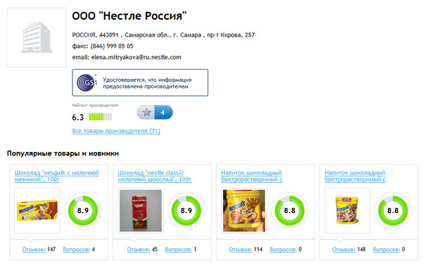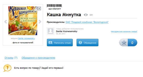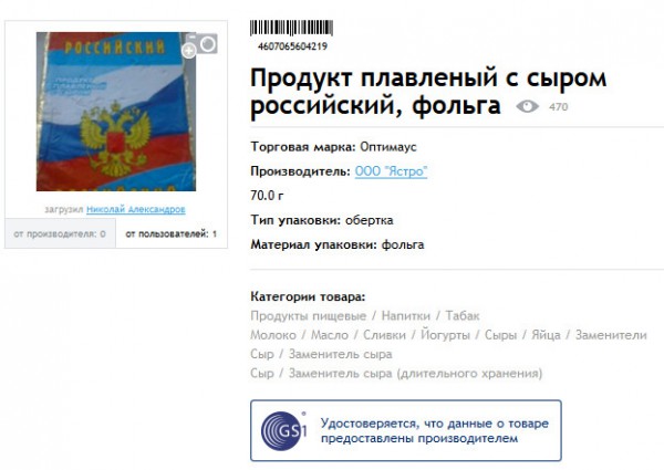 Почитал всякие описания, выяснил, что создатели сервиса особенно упирают на то, что в их базе содержатся сведения о большом количестве товаров и продуктов российского производства: тех, которые занесены в базу Ассоциации автоматической идентификации “ЮНИСКАН/ГС1 РУС”, с которой разработчики сотрудничают. (Также они имеют доступ к международной базе GS1, откуда получают сведения о производителях зарубежных товаров и продуктов.)