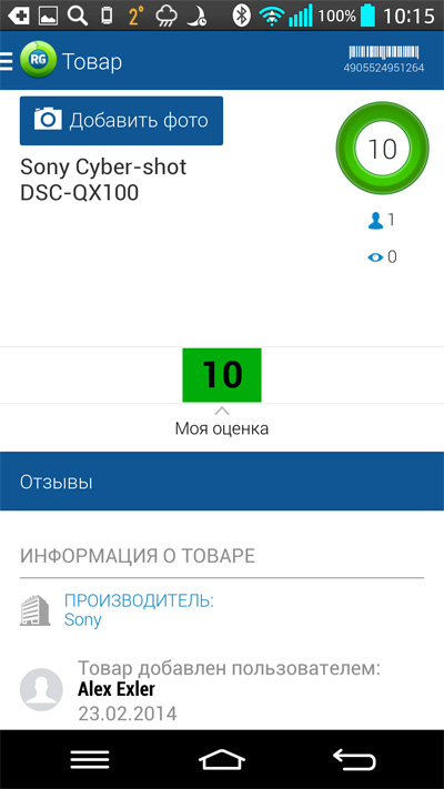 Механизм реализован, на мой взгляд, грамотно и пользоваться этим удобно, однако смотришь на все это и в голову сразу приходит мысль о том, что тяжеловато им будет конкурировать с "Яндекс.Маркетом", где, как известно, уже давно можно искать товар по названию и штрих-коду, и где для каждого наименования отзывов будет явно побольше. Впрочем, как показала практика, разница в количестве отзывов вовсе не ошеломляющая, а где-то пока в 2-3 раза - сервис Rate&Goods тоже существует не первый день.