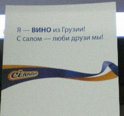 Когда я увидел магазин этой сети впервые (в Киеве), то долго смеялся и сразу их зауважал - какая нужна самоирония, что бы назвать сеть крупных (и неплохих, судя по одному-двум посещениям) супермаркетов Сельпо! Так что данные "креатиффы" вполне в русле их названия. Есть, конечно, перекосы, есть пошлость, но (как это модно сейчас говорить) "тренд" мне лично нравится 😄