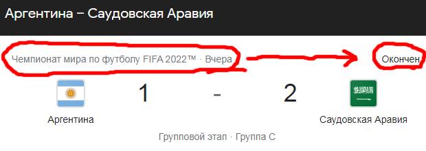 Офф: я, конечно, футболом не интересуюсь, но Аргентина-Саудиты... Вот зэ фак?