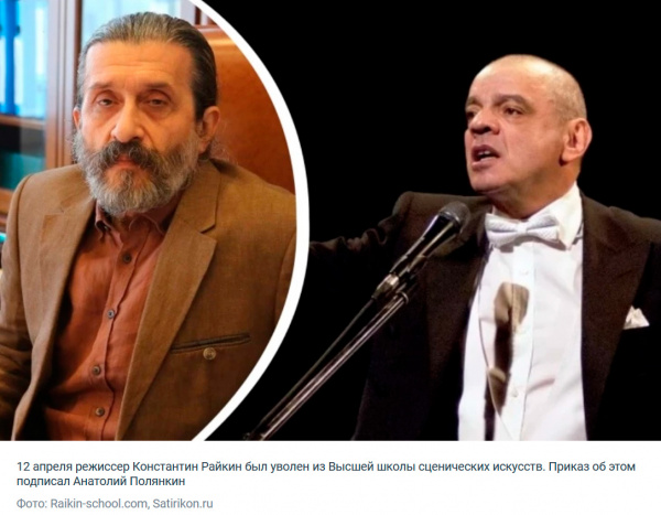 12 апреля Полянкин снял Константина Райкина с поста художественного руководителя Театральной школы Константина Райкина. В студсовете вуза назвали это решение ректора «неприемлемым и идущим вразрез с интересами студентов», а Константин Райкин заявил, что будет его оспаривать. (Отсюда.)