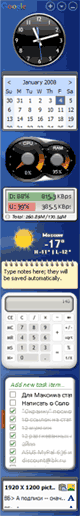 Aлекс, что скажете о Yahoo Widgets ? На мой взгляд, выглядят более симпатично и трафика так много не отжирают. В свое время, еще на ограниченном трафике, поставил Гугл Десктоп и понял, что он меня разорит. Сейчас безлимит, но "осадок остался" - пользуюсь Яху, у него виджетов тоже море.