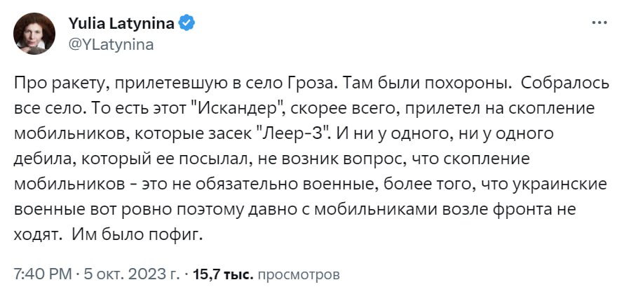 И Запад такой: "помогать надо осторожно, а то по рашистким войскам больно ударят, нельзя же так". И Маск: "помог 100 миллионов долларами, а они обижаются, они же там с жиру бесятся с моим Старлинком".