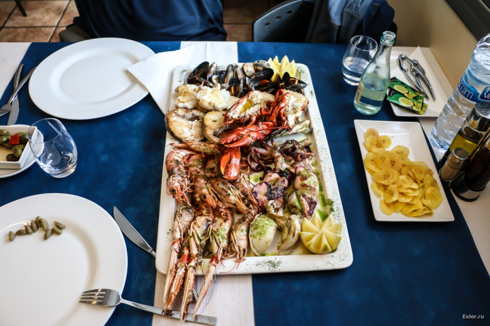 Знаменитая "Большая тарелка морепродуктов" - на сто процентов аутентичная и такая же свежайшая и вкусная, как была раньше в La Cantonada. Это типа на двоих, стоит 50 евро. Мы эту тарелочку нередко брали на четверых - вполне хватало.